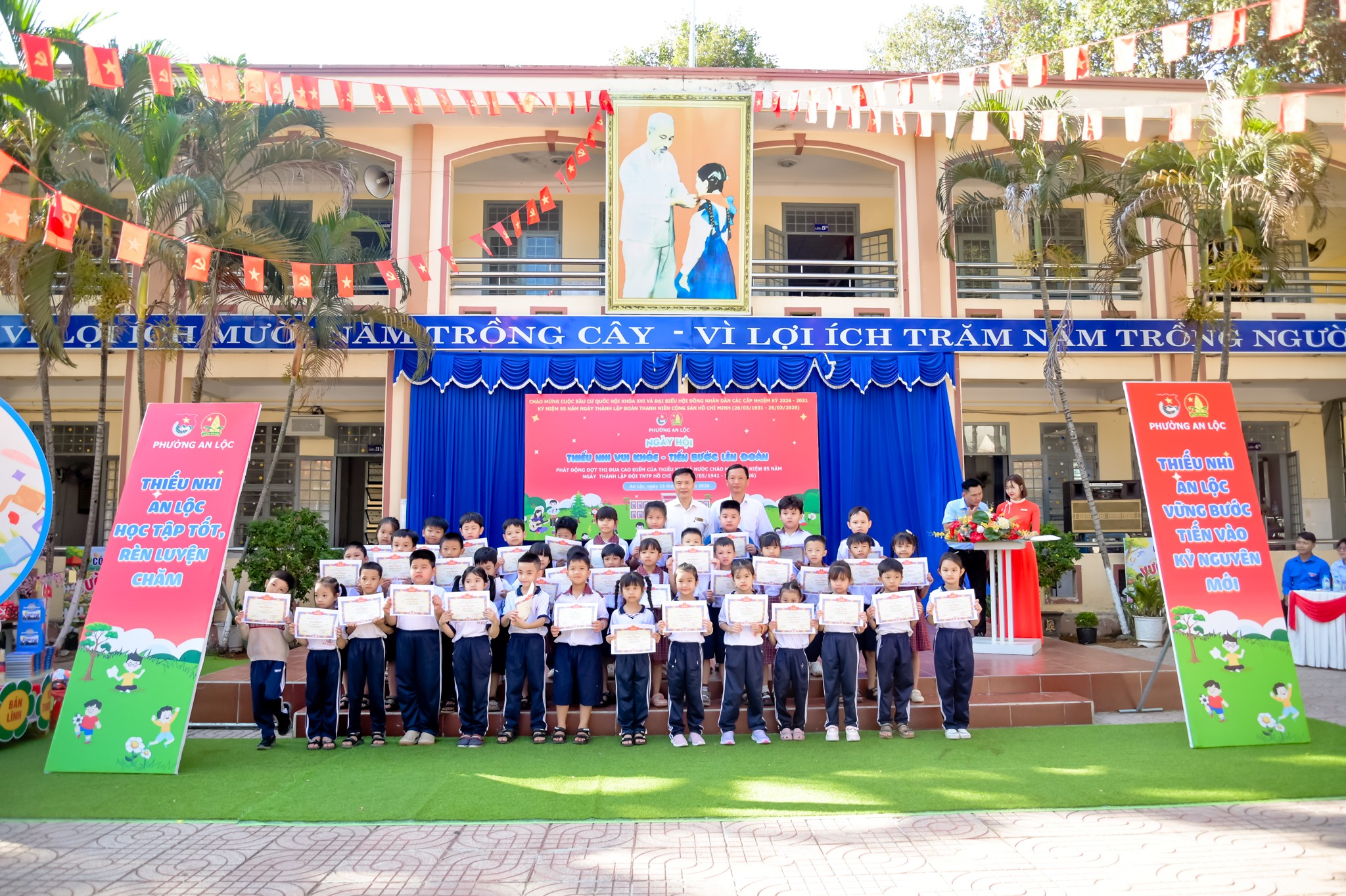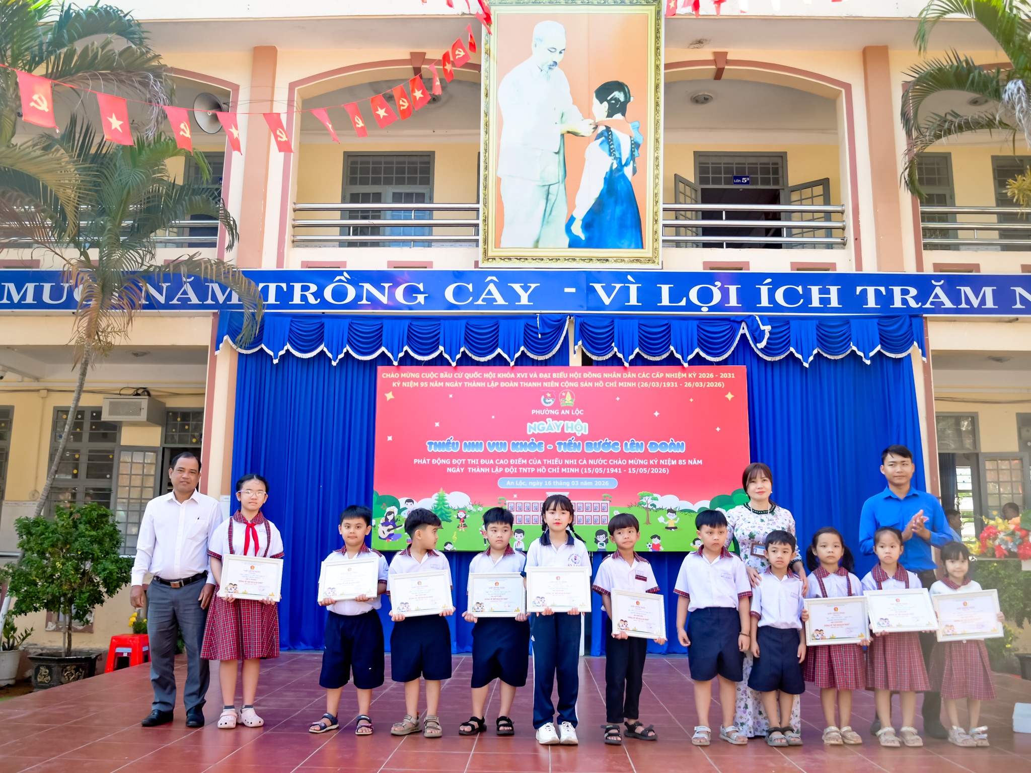 Ngày 16/3, tại Trường Tiểu học An Lộc B, thực hiện sự chỉ đạo của Đoàn - Đội phường An Lộc, Liên đội nhà trường tổ chức điểm Ngày hội “Thiếu nhi vui khỏe - Tiến bước lên Đoàn” năm học 2025 - 2026 với sự tham gia của hơn 800 đội viên, thiếu nhi. Tham dự chương trình có đồng chí Lê Thị Hồng Phấn - Phó Bí thư Thường trực Đảng ủy phường; đồng chí Điểu Hải - Ủy viên Ban Thường vụ Đảng ủy, Chủ tịch Ủy ban MTTQ Việt Nam phường; đồng chí Khiếu Ngọc Tiển - Đảng ủy viên, Phó Chủ tịch Ủy ban MTTQ Việt Nam phường, Bí thư Đoàn phường cùng đại diện lãnh đạo Phòng Văn hóa - Xã hội phường, Ban Giám hiệu nhà trường, hội cha mẹ học sinh và đông đảo thầy cô, học sinh.
