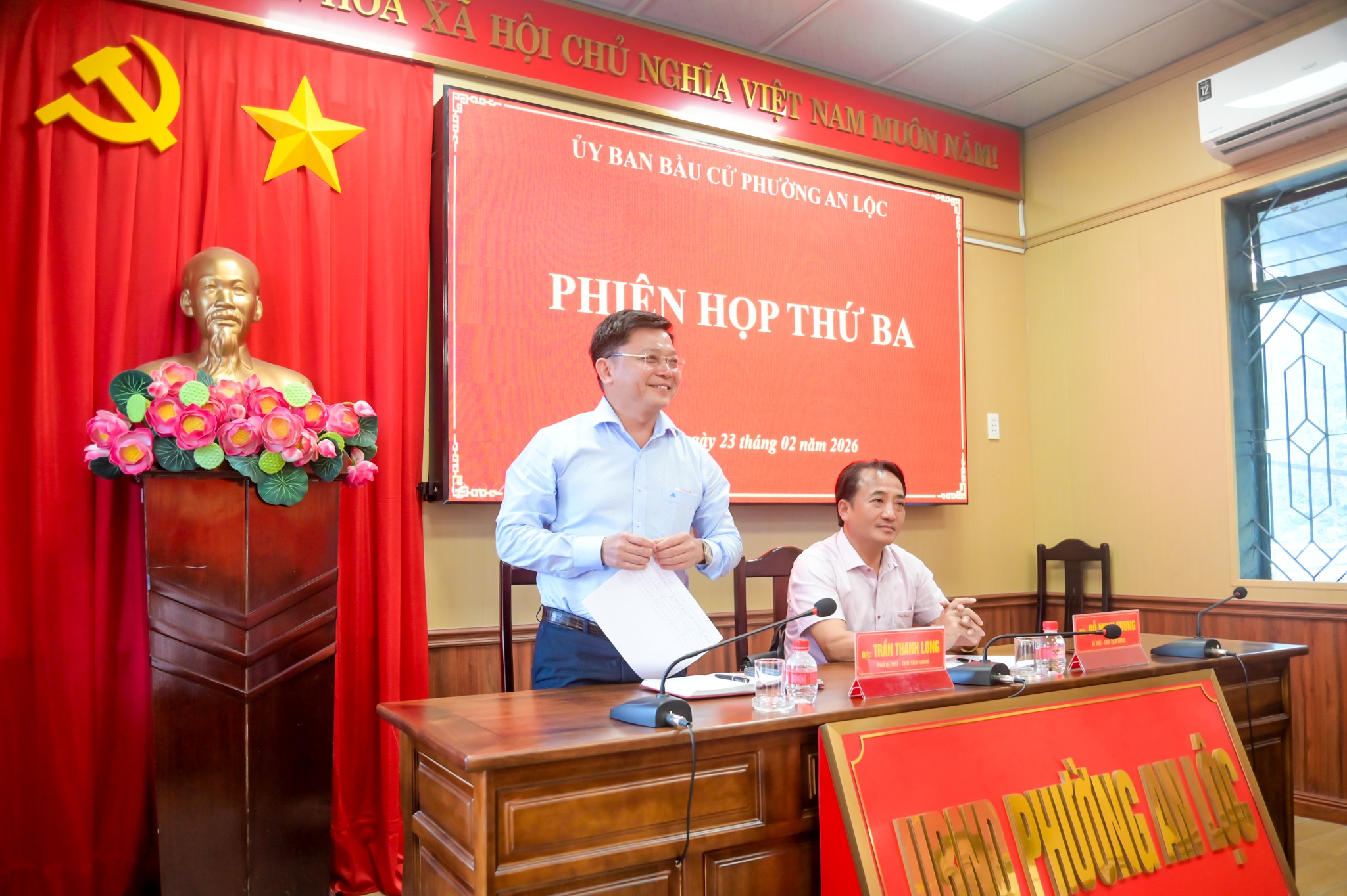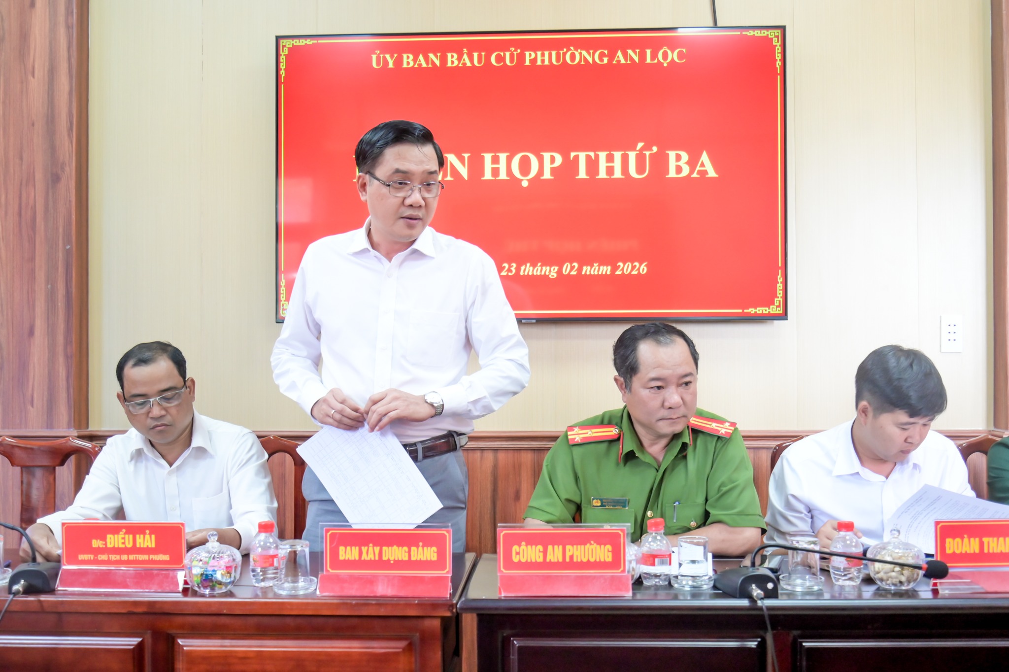 Ngày 23/2, Ủy ban Bầu cử phường An Lộc tổ chức phiên họp thứ 3 nhằm công bố danh sách chính thức những người ứng cử đại biểu Hội đồng nhân dân phường An Lộc khóa II, nhiệm kỳ 2026 - 2031 theo từng đơn vị bầu cử. Chủ trì phiên họp có đồng chí Đỗ Minh Trung - Bí thư Đảng ủy, Chủ tịch HĐND phường, Chủ tịch Ủy ban Bầu cử phường và đồng chí Trần Thanh Long - Phó Bí thư Đảng ủy, Chủ tịch UBND phường. Tham dự còn có các đồng chí thành viên Ủy ban Bầu cử phường.