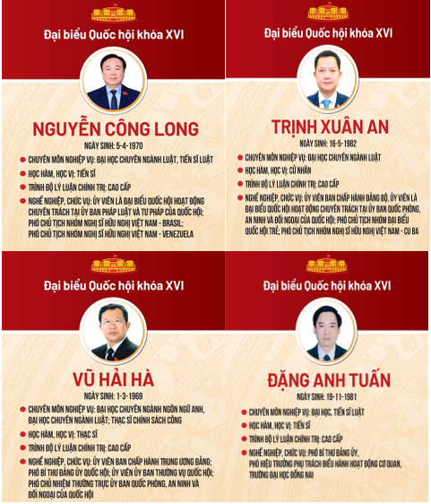 Danh sách chính thức 18 đại biểu trúng cử đại biểu Quốc hội khóa XVI - Tỉnh Đồng Nai
