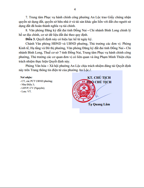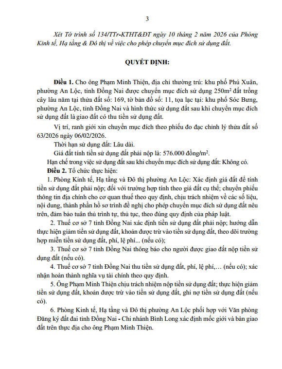 Quyết định cho phép chuyển mục đích sử dụng đất - Phạm Minh Thiện (TĐ 168)