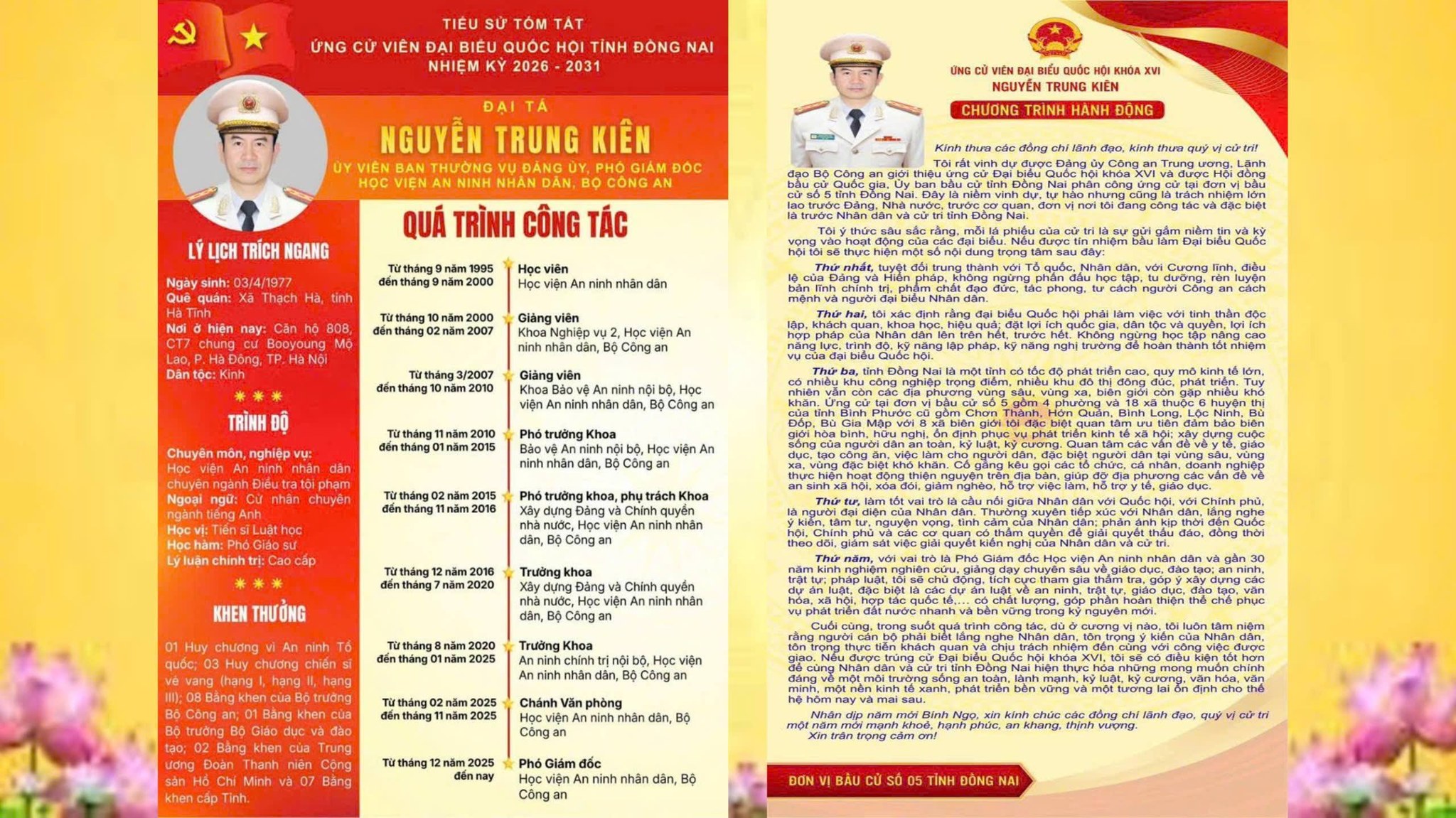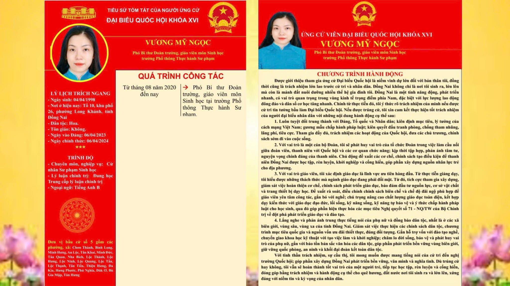 TIỂU SỬ TÓM TẮT CỦA NGƯỜI ỨNG CỬ ĐẠI BIỂU QUỐC HỘI KHÓA XVI TẠI ĐƠN VỊ BẦU CỬ SỐ 5 TỈNH ĐỒNG NAI.
