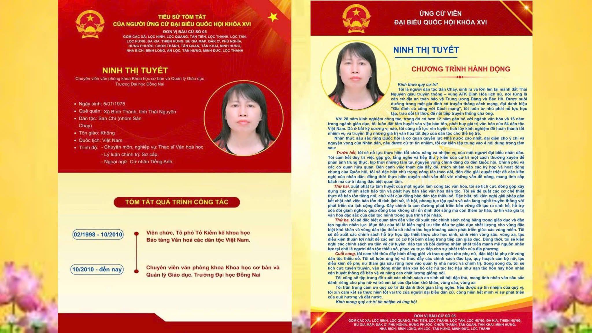 TIỂU SỬ TÓM TẮT CỦA NGƯỜI ỨNG CỬ ĐẠI BIỂU QUỐC HỘI KHOÁ XVI TẠI ĐƠN VỊ BẦU CỬ SỐ 5 TỈNH ĐỒNG NAI.