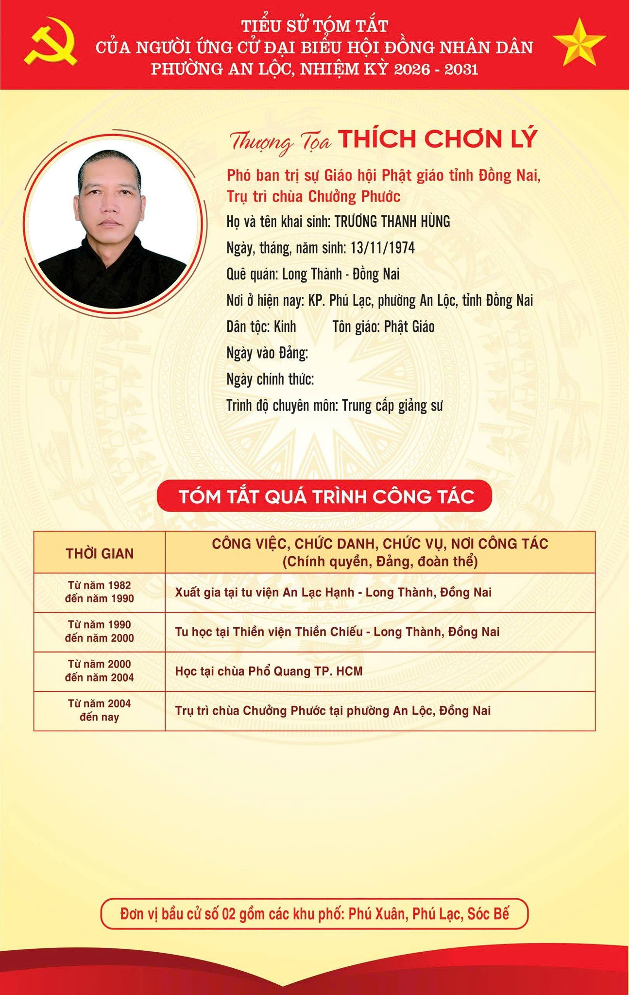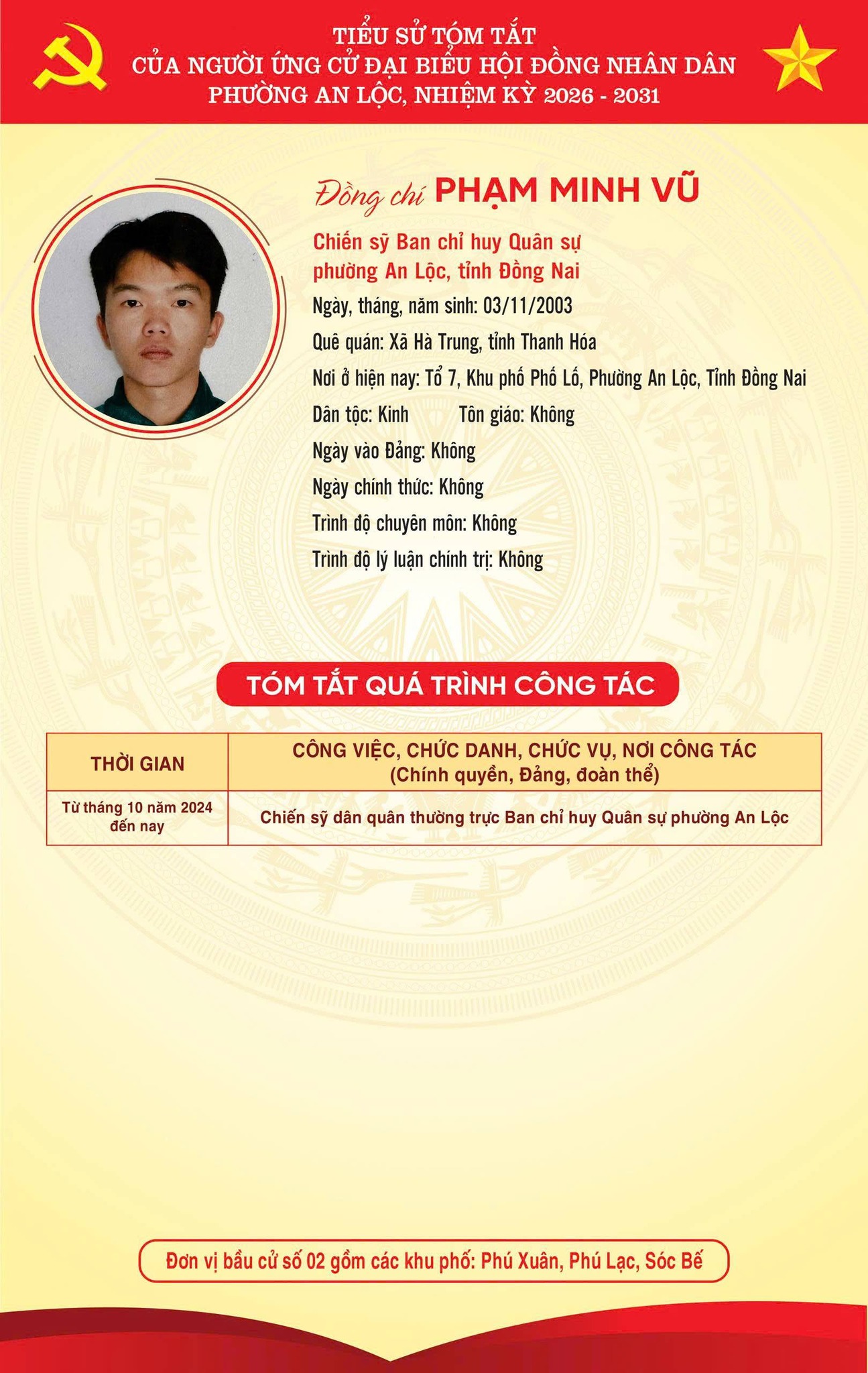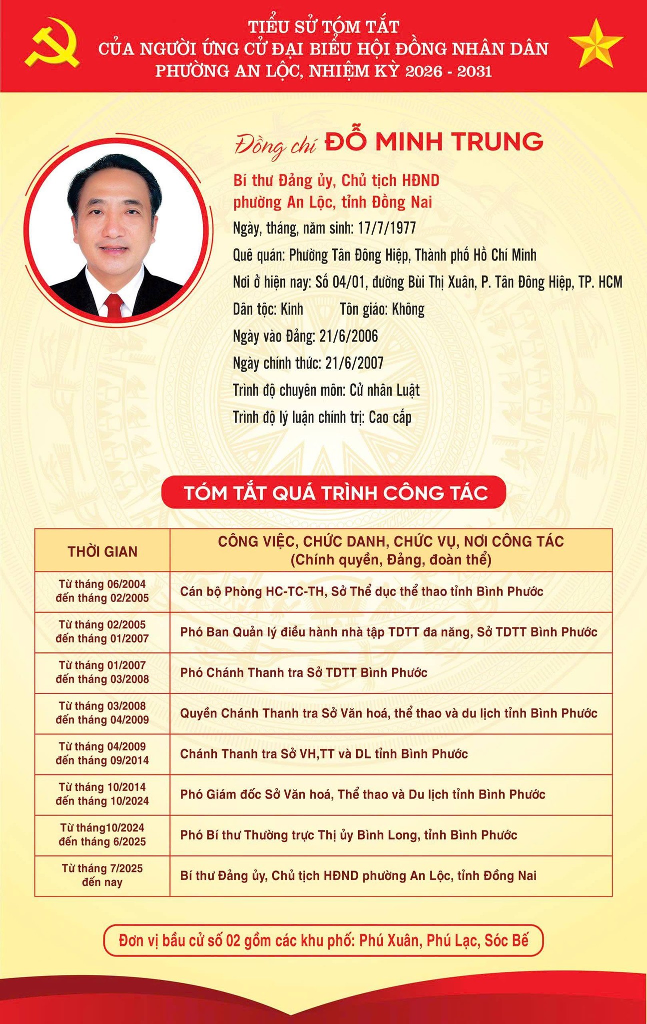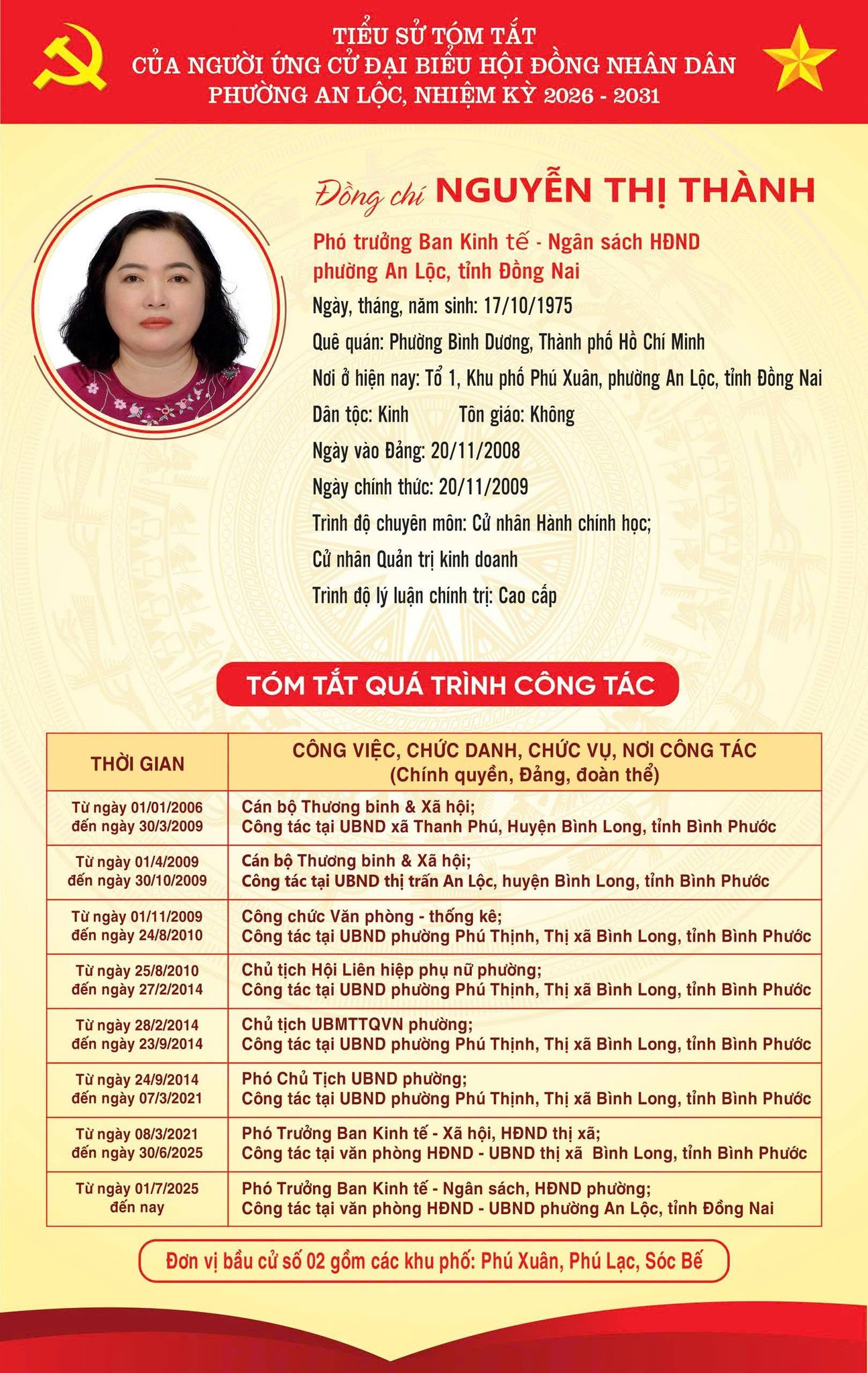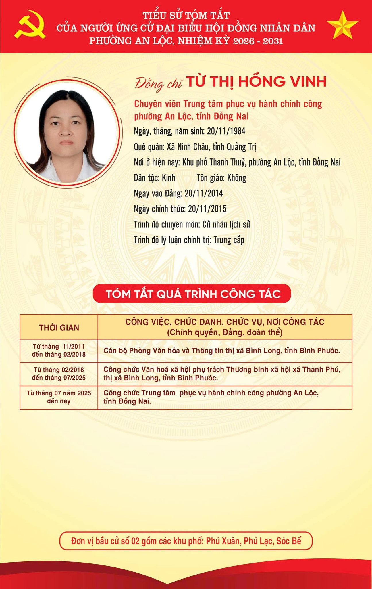 TRÂN TRỌNG GIỚI THIỆU TIỂU SỬ TÓM TẮT CỦA CÁC ỨNG CỬ VIÊN ĐẠI BIỂU HỘI ĐỒNG NHÂN DÂN PHƯỜNG AN LỘC KHOÁ II, NHIỆM KỲ 2026-2031.