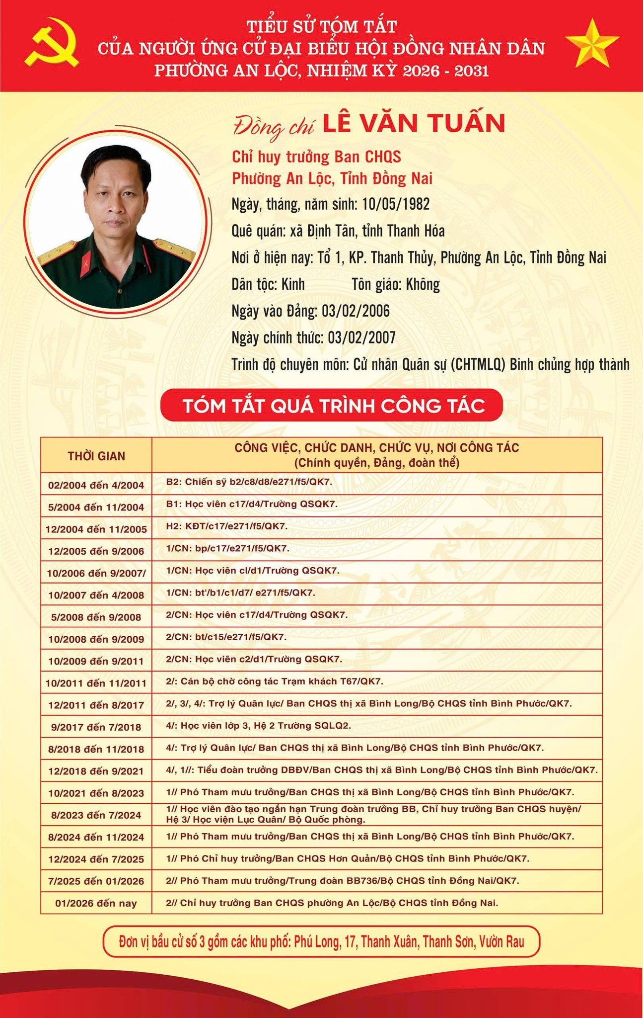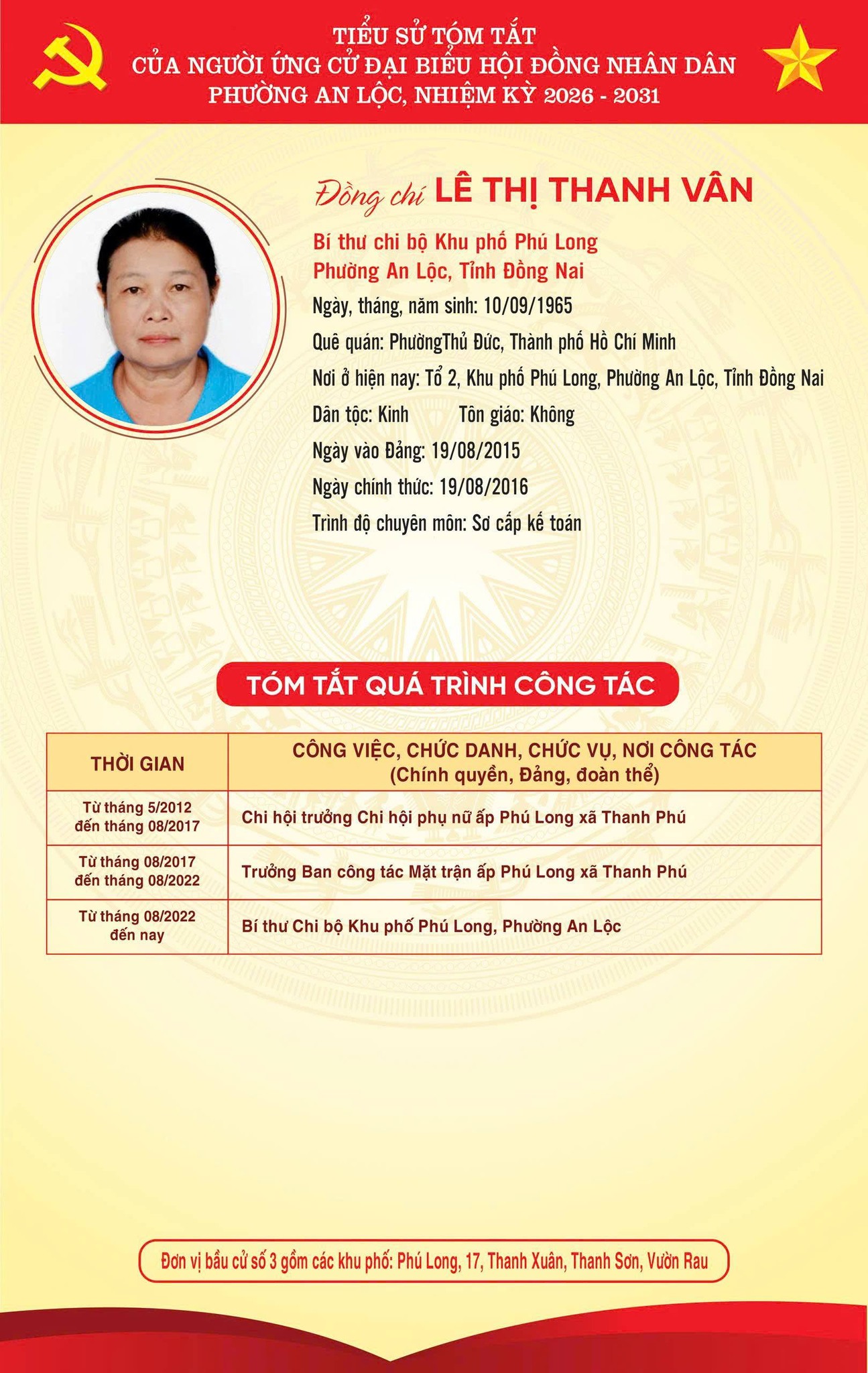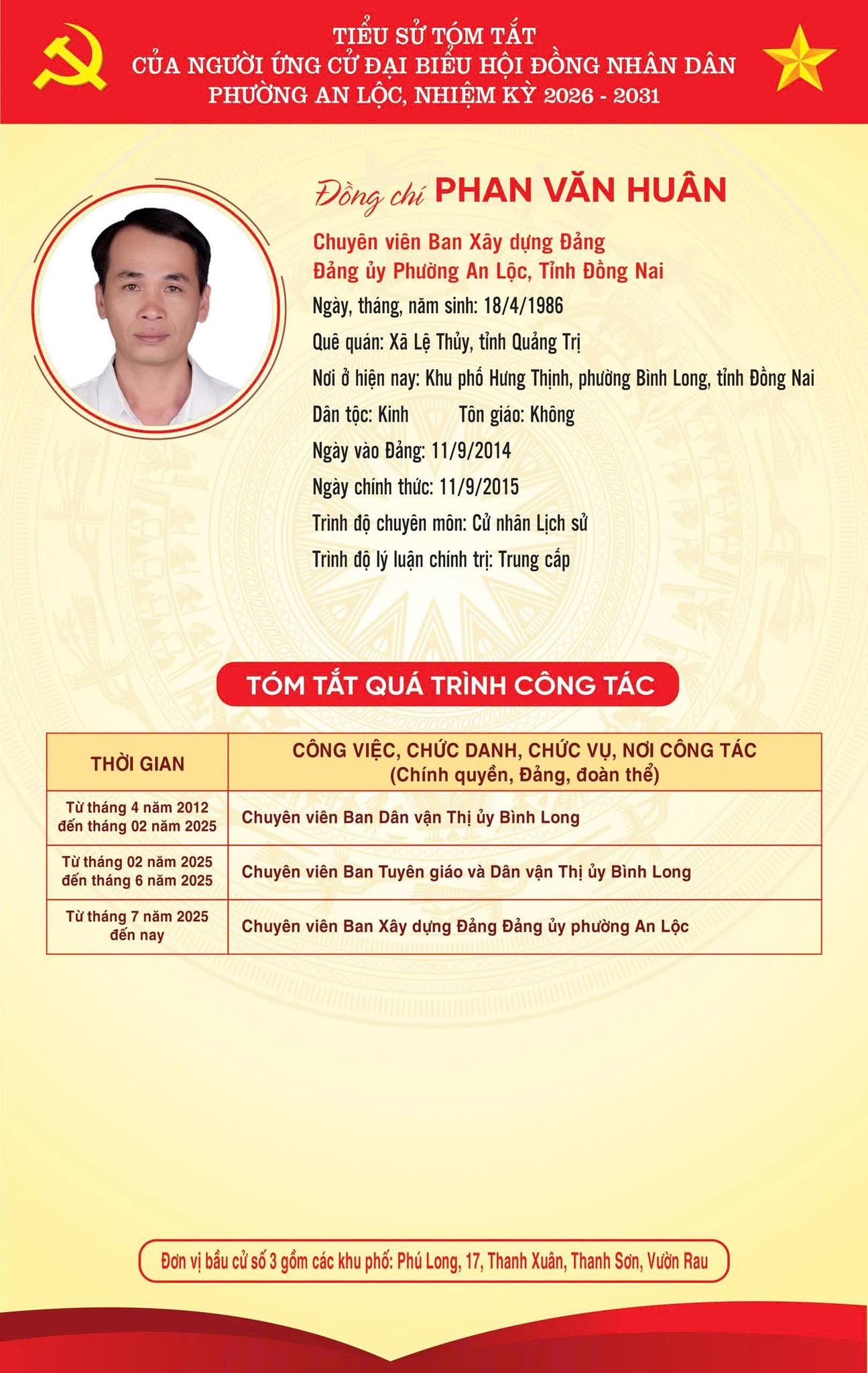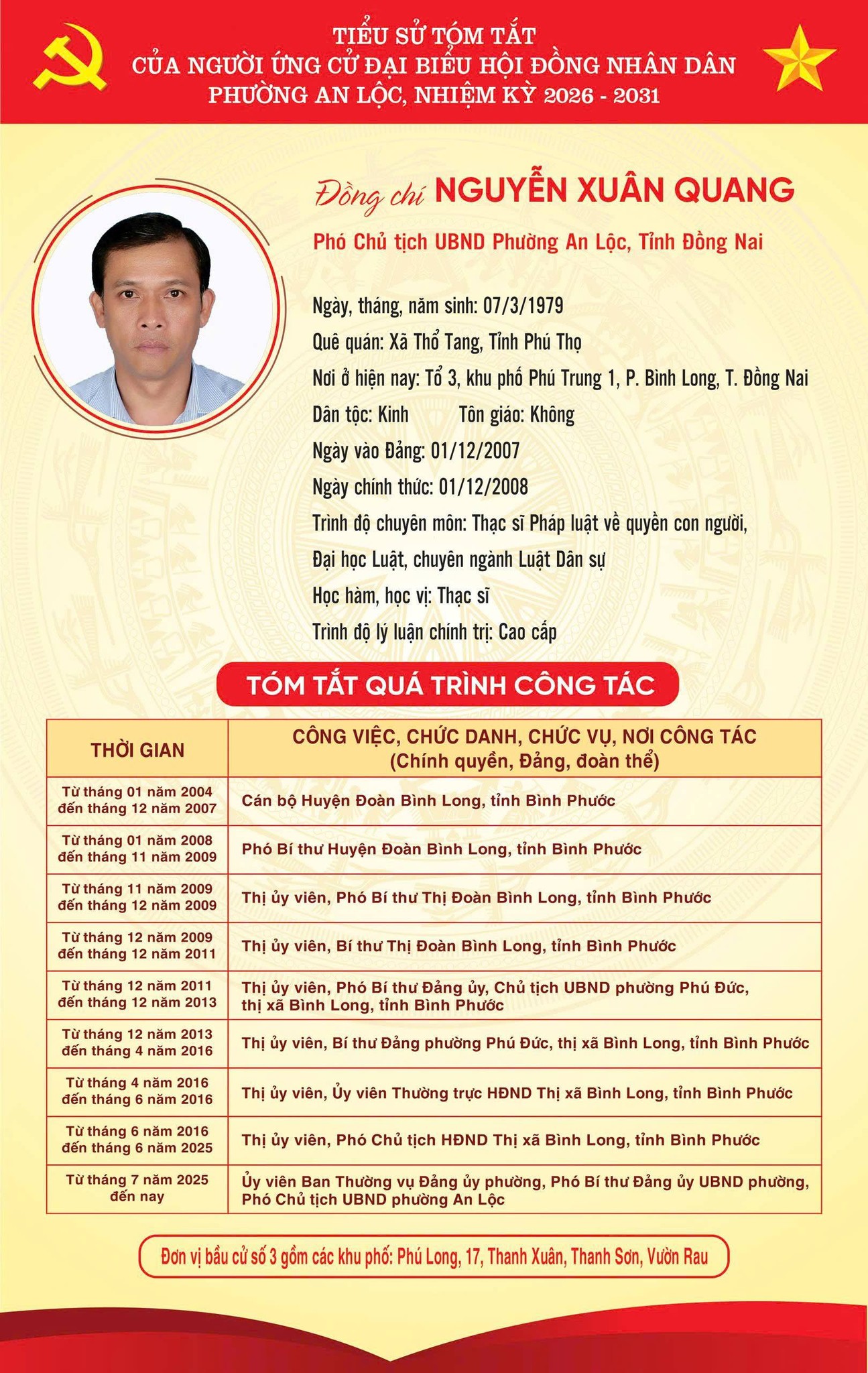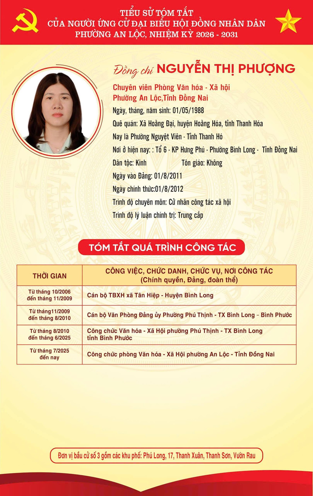 TRÂN TRỌNG GIỚI THIỆU TIỂU SỬ TÓM TẮT CỦA CÁC ỨNG CỬ VIÊN ĐẠI BIỂU HỘI ĐỒNG NHÂN DÂN PHƯỜNG AN LỘC KHOÁ II, NHIỆM KỲ 2026-2031.