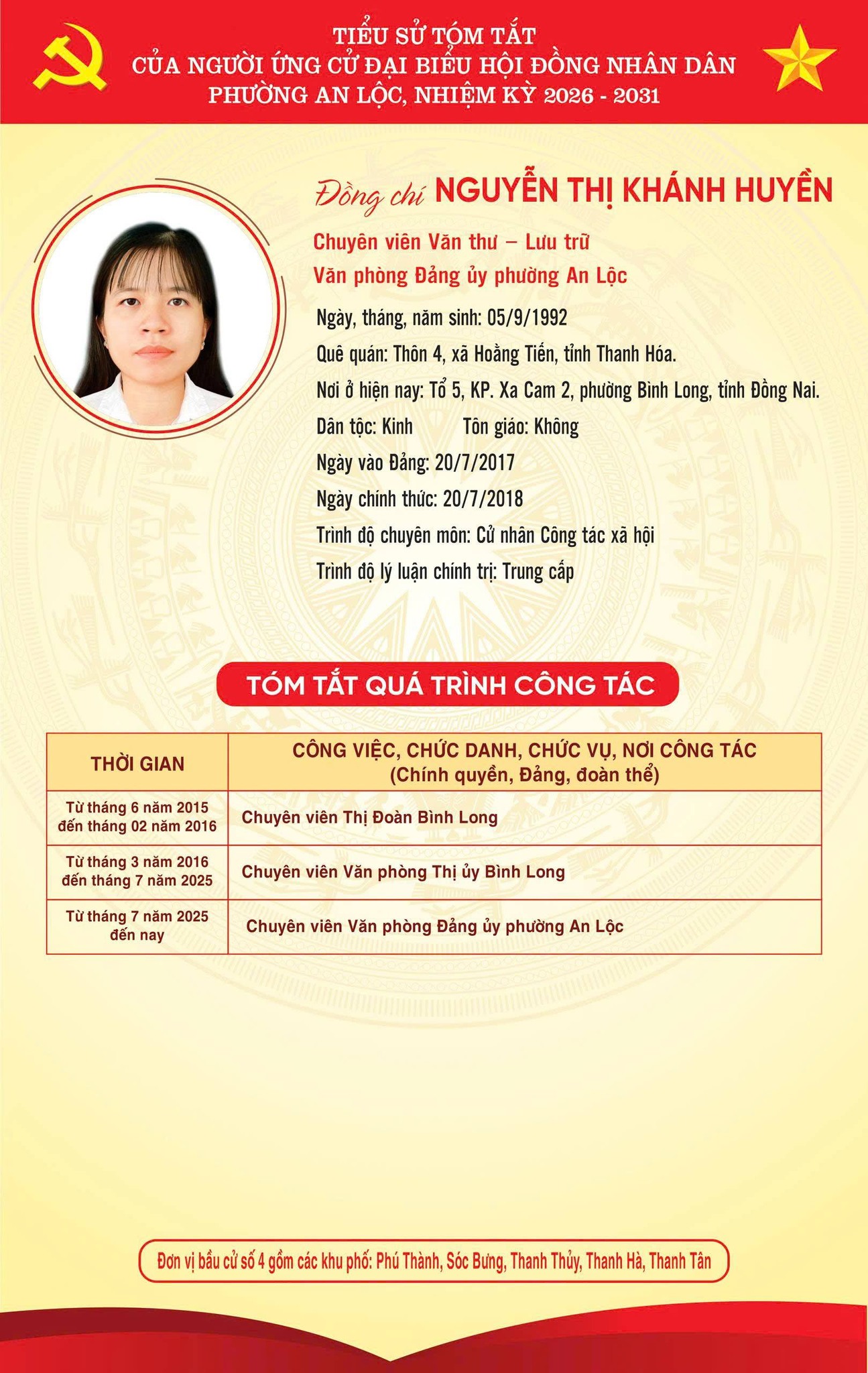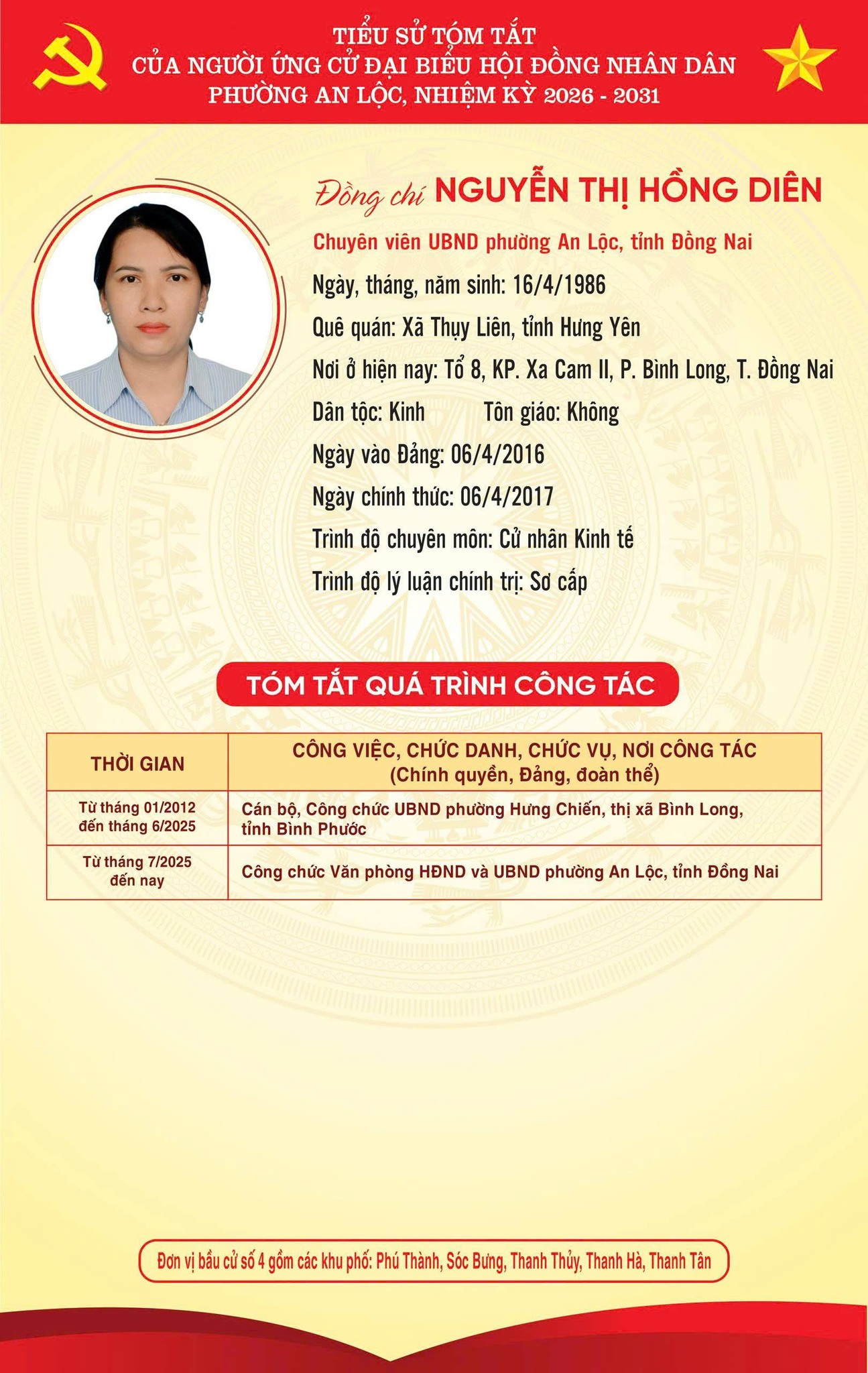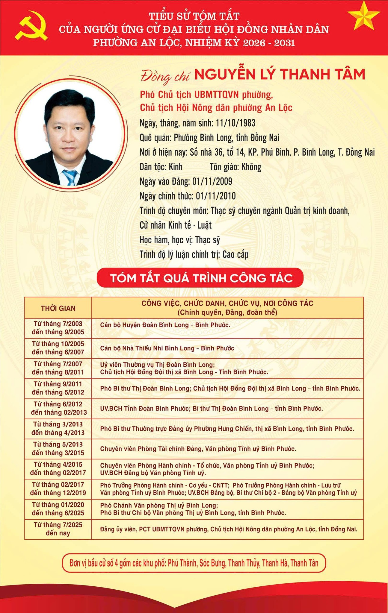 TRÂN TRỌNG GIỚI THIỆU TIỂU SỬ TÓM TẮT CỦA CÁC ỨNG CỬ VIÊN ĐẠI BIỂU HỘI ĐỒNG NHÂN DÂN PHƯỜNG AN LỘC KHOÁ II, NHIỆM KỲ 2026-2031.
