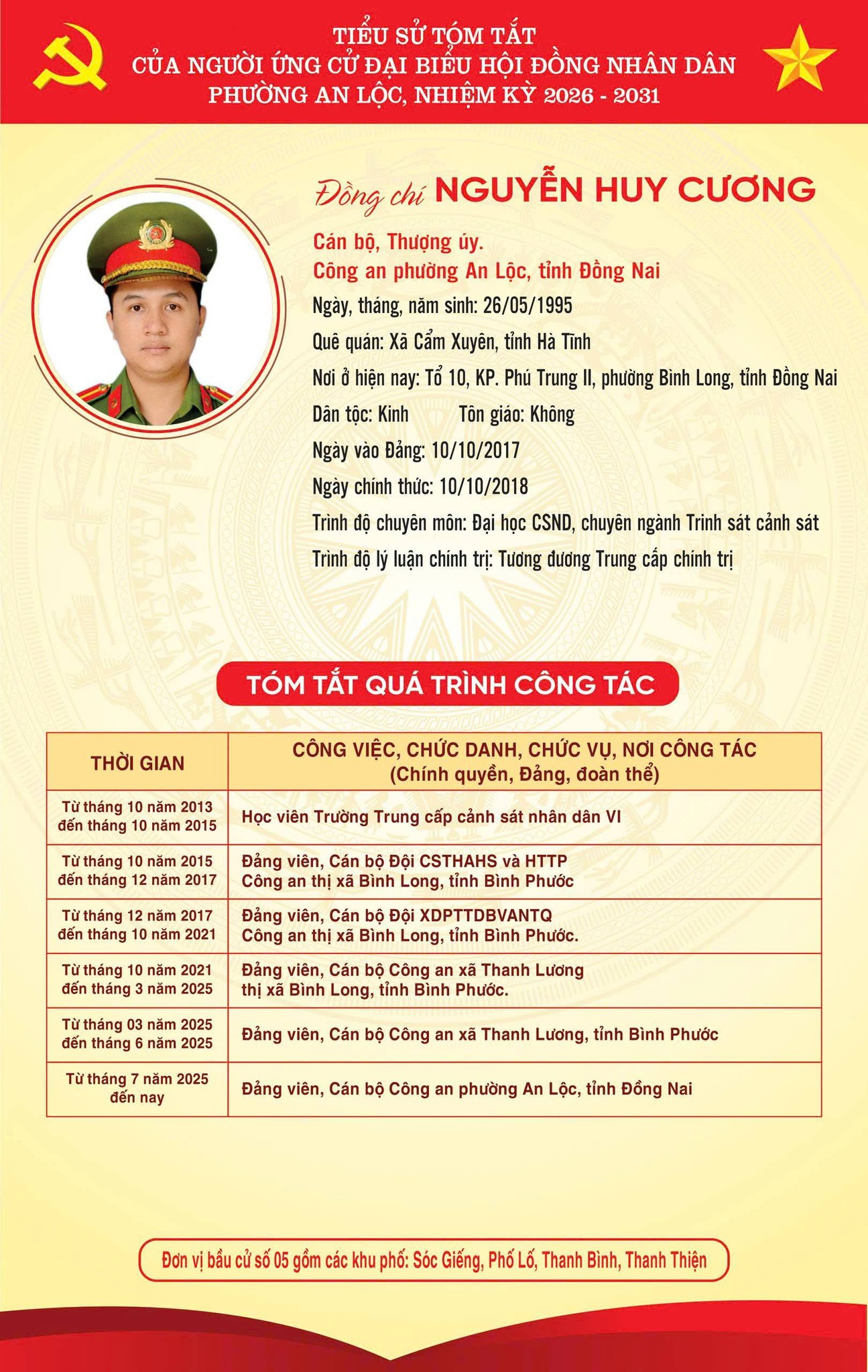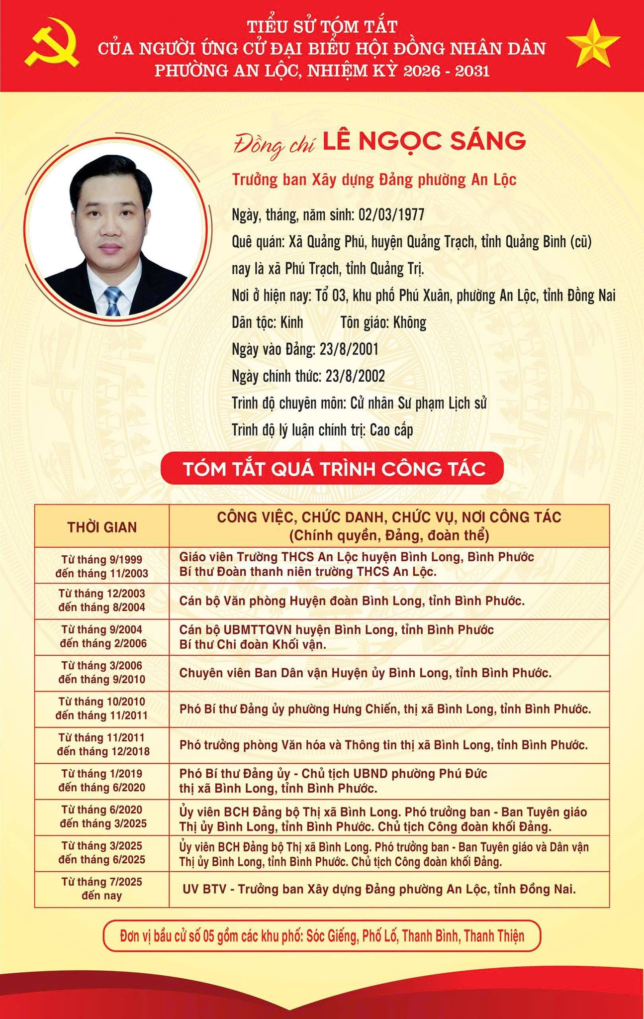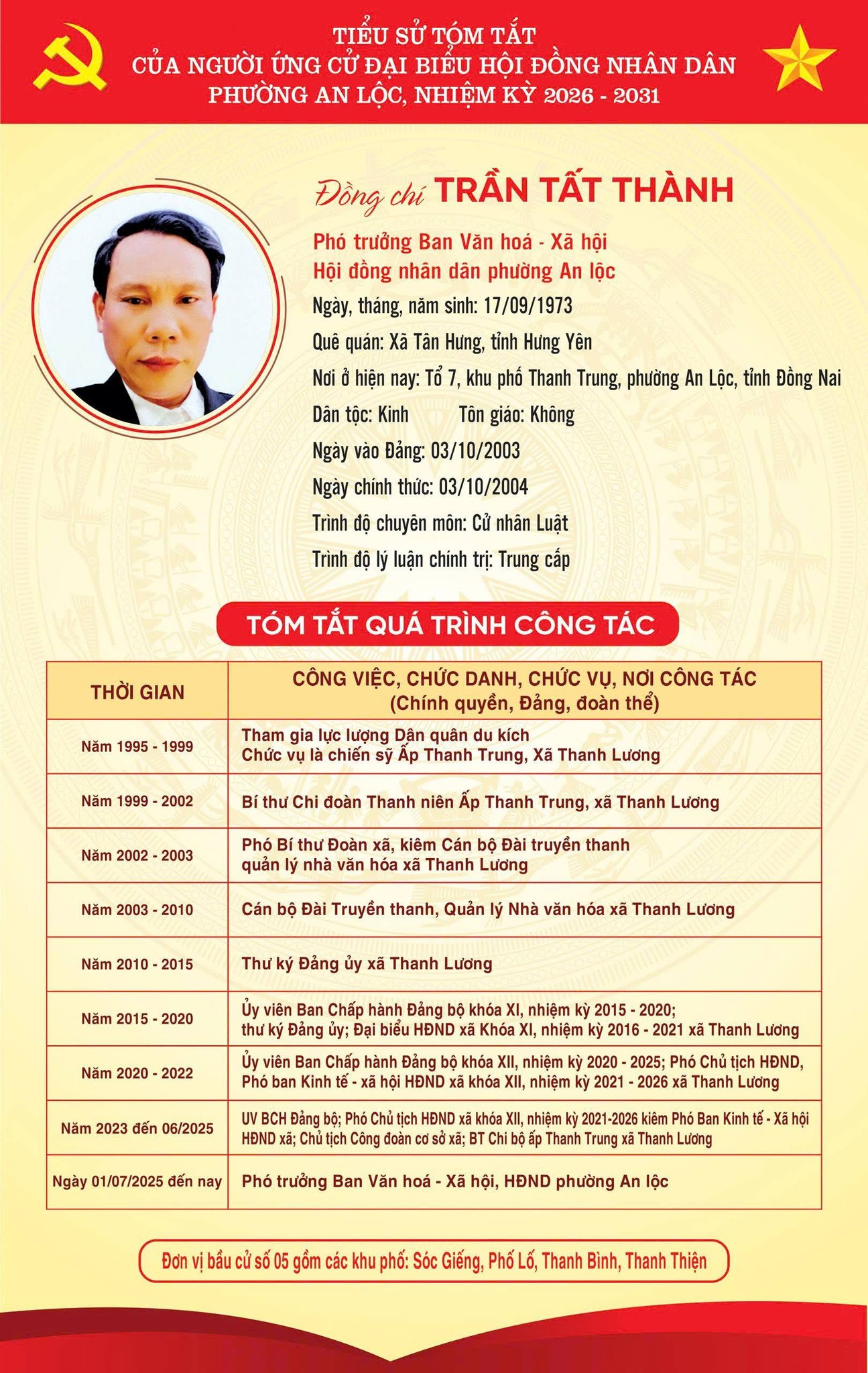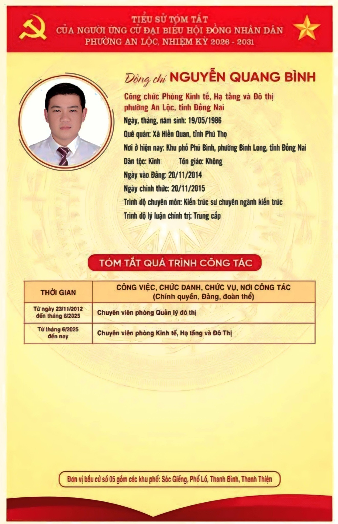 TRÂN TRỌNG GIỚI THIỆU TIỂU SỬ TÓM TẮT CỦA CÁC ỨNG CỬ VIÊN ĐẠI BIỂU HỘI ĐỒNG NHÂN DÂN PHƯỜNG AN LỘC KHOÁ II, NHIỆM KỲ 2026-2031.