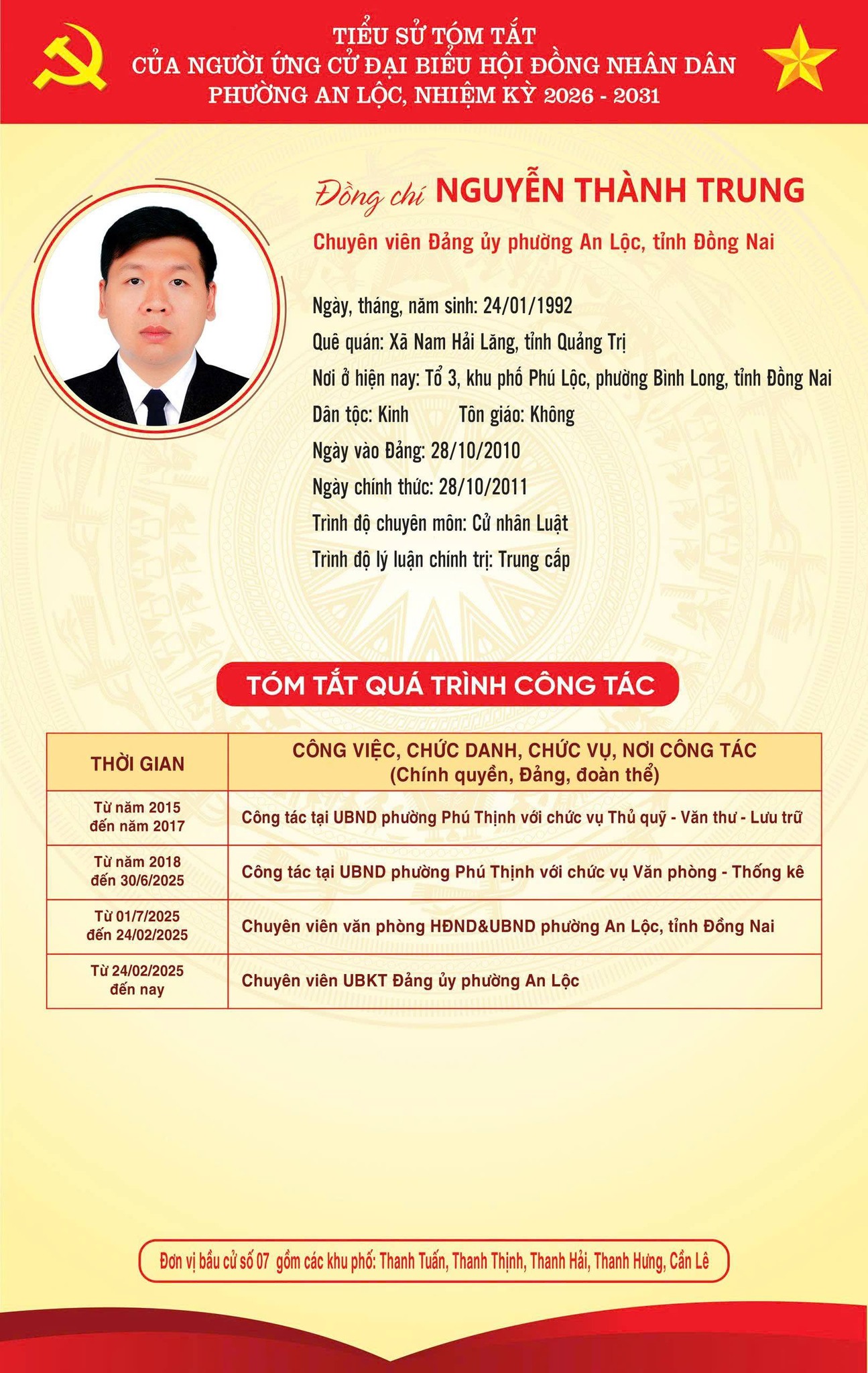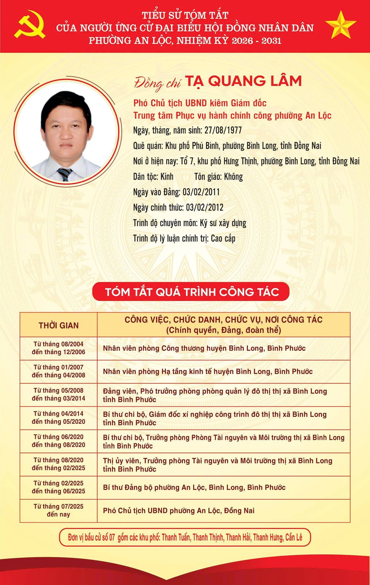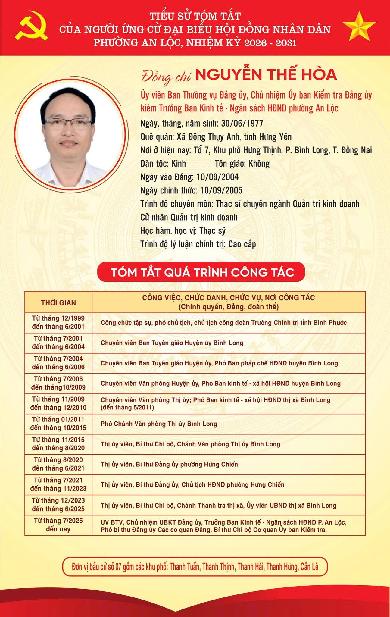 TRÂN TRỌNG GIỚI THIỆU TIỂU SỬ TÓM TẮT CỦA CÁC ỨNG CỬ VIÊN ĐẠI BIỂU HỘI ĐỒNG NHÂN DÂN PHƯỜNG AN LỘC KHOÁ II, NHIỆM KỲ 2026-2031.