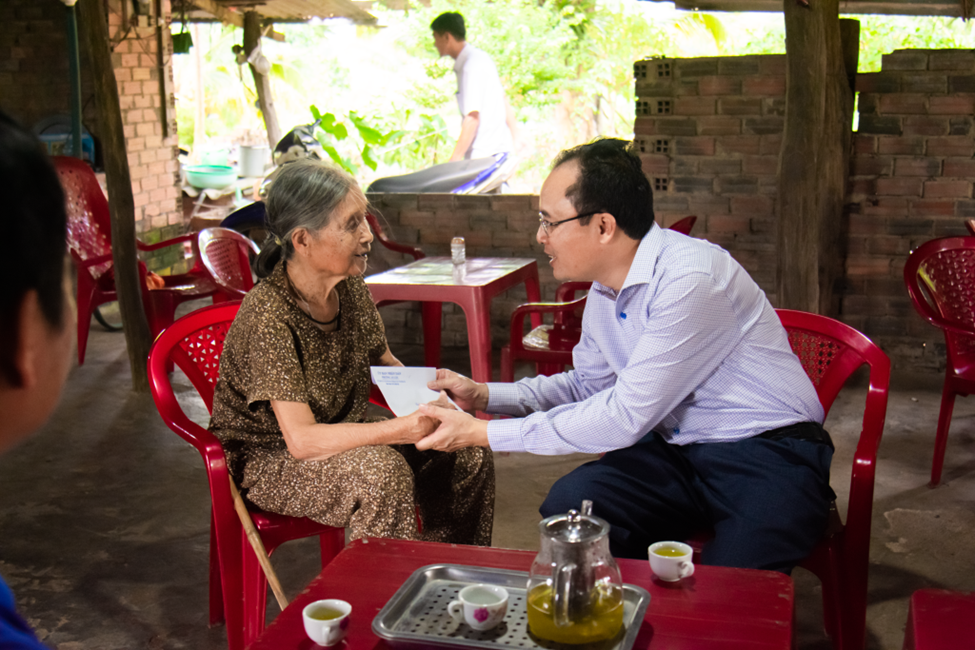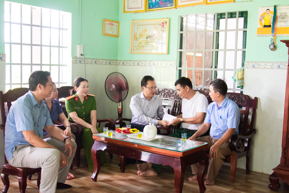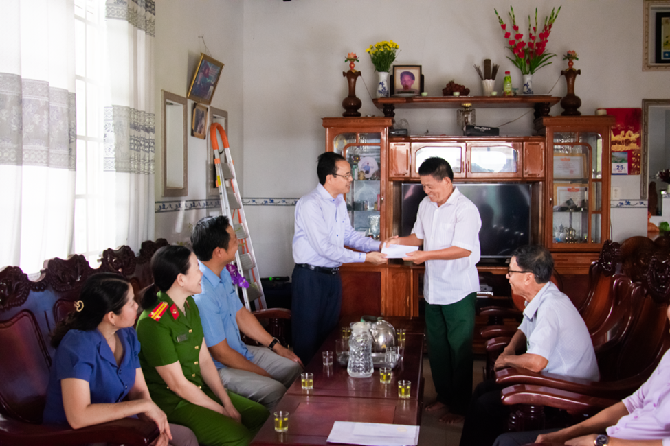 Tại mỗi điểm đến, đoàn đã dành thời gian trò chuyện, thăm hỏi sức khỏe, động viên tinh thần, đồng thời bày tỏ lòng biết ơn sâu sắc trước sự cống hiến, hy sinh thầm lặng của các thế hệ cha anh vì nền độc lập, hòa bình hôm nay. Trong dịp này, đoàn đã đến thăm 10 hộ gia đình chính sách, người có công tiêu biểu, trao tặng mỗi hộ một phần quà trị giá 500.000 đồng tiền mặt – tuy giá trị vật chất không lớn nhưng chứa đựng nghĩa tình và sự trân trọng của cấp ủy, chính quyền địa phương.