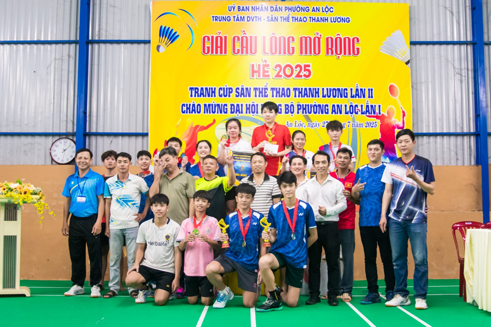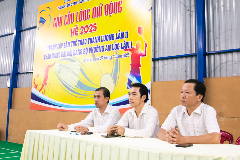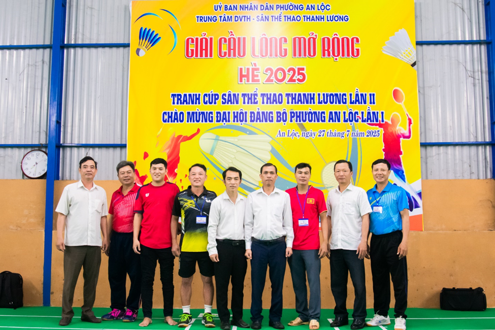 Hòa trong không khí thi đua sôi nổi chào mừng Đại hội Đảng bộ phường An Lộc lần thứ I, đồng thời thiết thực đẩy mạnh phong trào rèn luyện thân thể theo gương Bác Hồ vĩ đại, ngày 27/7, Trung tâm Dịch vụ tổng hợp phường An Lộc phối hợp Sân thể thao Thanh Lương tổ chức Giải cầu lông mở rộng hè 2025 – tranh cúp Sân thể thao Thanh Lương. Đây là hoạt động thể thao quy mô, ý nghĩa, nhằm cổ vũ phong trào “Toàn dân rèn luyện thân thể theo gương Bác Hồ vĩ đại”, tạo khí thế thi đua sôi nổi trong cán bộ, Nhân dân trước thềm Đại hội Đảng. Tham dự lễ khai mạc có UVBTV Đảng uỷ, Phó Chủ tịch UBND phường – Nguyễn Xuân Quang; Giám đốc Trung tâm Dịch vụ tổng hợp phường – Phạm Trọng Nghĩa; Phó trưởng Phòng Văn hóa – Xã hội Phạm Thành Nam; đại diện chủ sân nhà tài trợ giải đấu ông Phạm Hồ Mạnh cùng hơn 100 vận động viên đến từ các khu phố, đơn vị, câu lạc bộ trên địa bàn và khu vực lân cận.