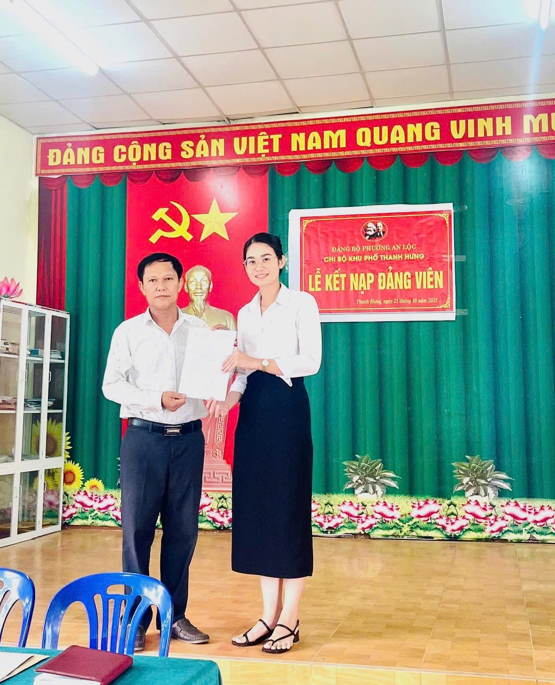 Buổi Lễ kết thúc trong không khí trang nghiêm, phấn khởi và đầy tinh thần đoàn kết. Việc kết nạp đảng viên mới không chỉ là niềm vinh dự, tự hào của cá nhân đảng viên mà còn là tinh thần đoàn kết, phát triển của Chi bộ khu phố Thanh Hưng.