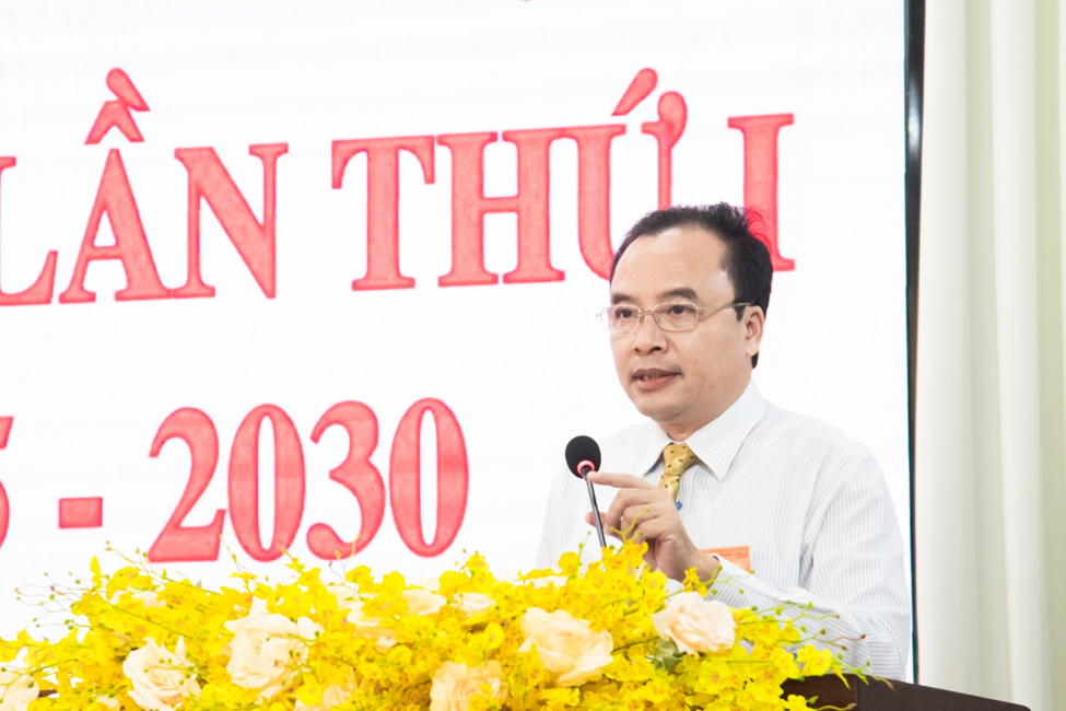 Đồng chí Đỗ Minh Trung – Bí thư Đảng ủy, Chủ tịch HĐND phường An Lộc phát biểu tại Đại hội