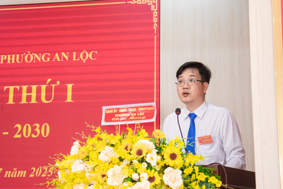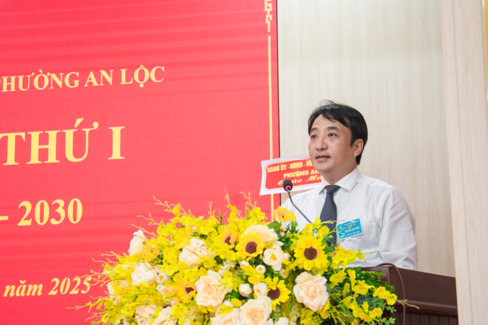 Phát biểu chỉ đạo tại Đại hội, Đồng chí Đỗ Minh Trung – Bí thư Đảng ủy, Chủ tịch HĐND phường An Lộc thống nhất cao với nội dung Báo cáo chính trị, đồng thời nhấn mạnh yêu cầu Đảng bộ các cơ quan đảng quán triệt Nghị quyết và chương trình hành động ngay sau Đại hội, tạo sự thống nhất trong toàn Đảng bộ. Đồng chí đề nghị tiếp tục hoàn thiện quy chế làm việc, nâng cao chất lượng phối hợp giữa cấp ủy, chuyên môn và đoàn thể; đẩy mạnh cải cách hành chính, chuyển đổi số, phát huy vai trò tham mưu trong công tác xây dựng Đảng, phục vụ hiệu quả Đại hội Đảng bộ phường lần thứ I. Đặc biệt, cần chú trọng giáo dục chính trị tư tưởng, xây dựng tổ chức Đảng vững mạnh toàn diện, thực hiện tốt mô hình “Chi bộ 4 tốt”, “Đảng viên 4 tốt”, góp phần đưa Nghị quyết nhanh chóng đi vào cuộc sống.