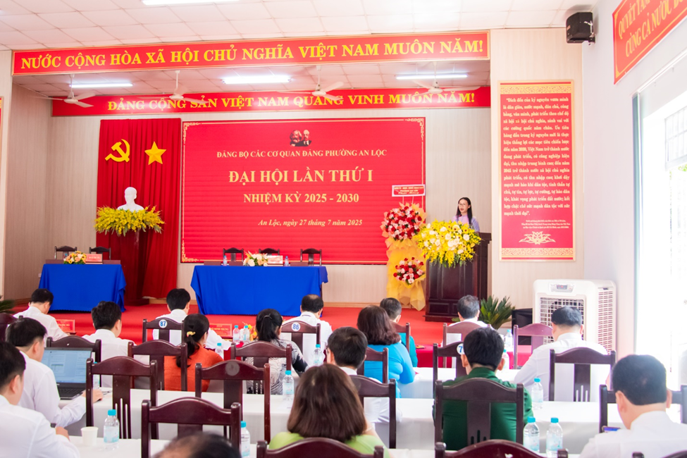 Ngày 27/7, Đảng bộ các cơ quan Đảng phường An Lộc tổ chức Đại hội lần thứ I, nhiệm kỳ 2025 – 2030. Tham dự Đại hội có Đồng chí Đỗ Minh Trung - Bí thư Đảng ủy, Chủ tịch HĐND phường; Đồng chí Lê Thị Hồng Phấn - Phó Bí thư Thường trực Đảng ủy, Bí thư Đảng bộ các cơ quan Đảng, cùng các đồng chí lãnh đạo UBND, đại diện các cơ quan Đảng và các đại biểu chính thức đã về dự.