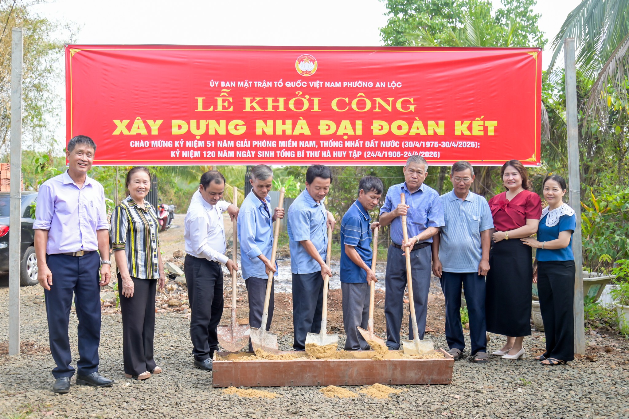 Sáng ngày 08/4, trong không khí hướng về những ngày lễ lớn của đất nước, Ủy ban MTTQ Việt Nam phường An Lộc đã tổ chức lễ khởi công xây dựng nhà Đại đoàn kết cho hộ ông Nguyễn Minh Hòa, khu phố Phú Lạc. Công trình được thực hiện nhân dịp kỷ niệm 51 năm Ngày Giải phóng miền Nam, thống nhất đất nước (30/4/1975 - 30/4/2026) và kỷ niệm 120 năm Ngày sinh Tổng Bí thư Hà Huy Tập (24/4/1906 - 24/4/2026). Tham dự buổi lễ có đồng chí Võ Khắc Hổ - Ủy viên Ban Thường vụ Đảng ủy, Phó Chủ tịch HĐND phường; đồng chí Điểu Hải - Ủy viên Ban Thường vụ Đảng ủy, Chủ tịch Ủy ban MTTQ Việt Nam phường cùng đại diện các ban, ngành, đoàn thể phường và đại diện khu phố Phú Lạc.